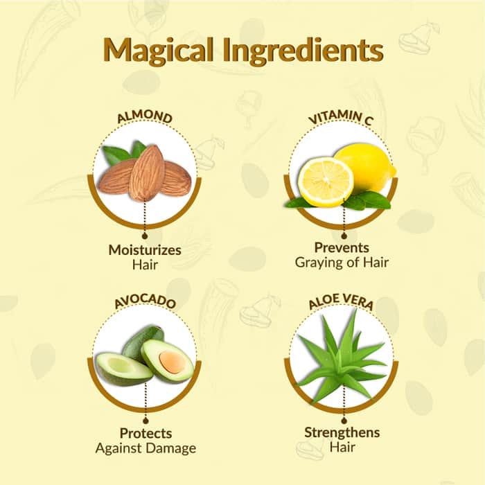 The pack contains Almond, which is known to provide sufficient nutrition and promote hair growth.
