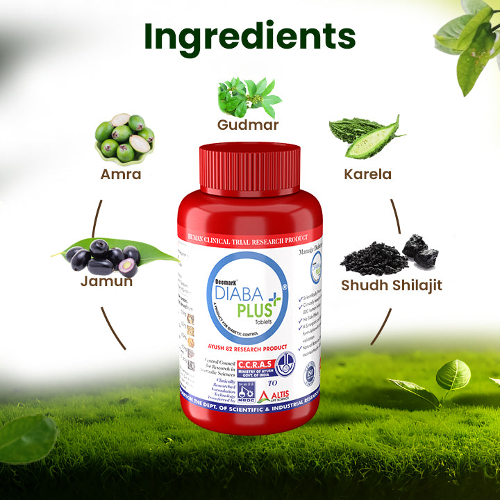 Diaba Plus is an Ayurvedic medicine has been clinically tested by CCRAS (Central Council for Research in Ayurvedic Sciences) has clinically tested this medicine to control blood sugar levels and diabetes. NRDC (National Research Development Corporation) has accredited its 100% herbal formulation. More than 1.1 million customers have trusted it to manage their diabetes with no problem. It contains Jamun, Karela, Amra, Gudmar, and Shudh Shilajit, five essential herbs. These herbs have been used in Ayurveda for centuries to help regulate sugar levels.